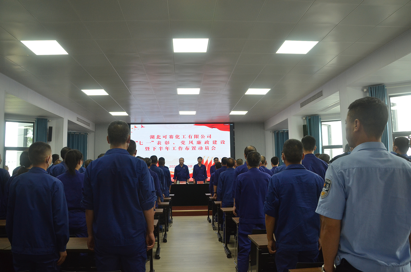 6月30日下午15:00,在党的第101个生日即将来临之际,可赛公司召开“七一”表彰、党风廉政建设暨下半年工作布置动员会。公司领导班子成员、部分党员、受表彰先进、班长以上管理人员共计70余人参加会议。会议由公司党委副书记、纪委书记、工会主席王宜波主持。