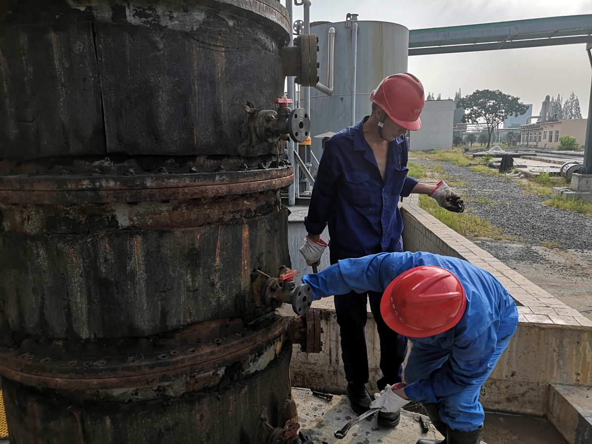 8月17日至18日,氯车间氯氢处理工区为期两天的泡罩塔清洗检修工作顺利完成。本次对泡罩塔内的酸泥、有机物等杂质进行了彻底清理,对产生的废水进行了有效收集处理,既保证了检修质量,又未发生环保污染问题。 为安全、优质、高效地完成检修任务,氯车间检修人员不畏炎热、苦战高温、加班加点,再次展现了不怕苦、不怕累的优良作风。