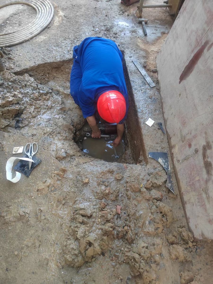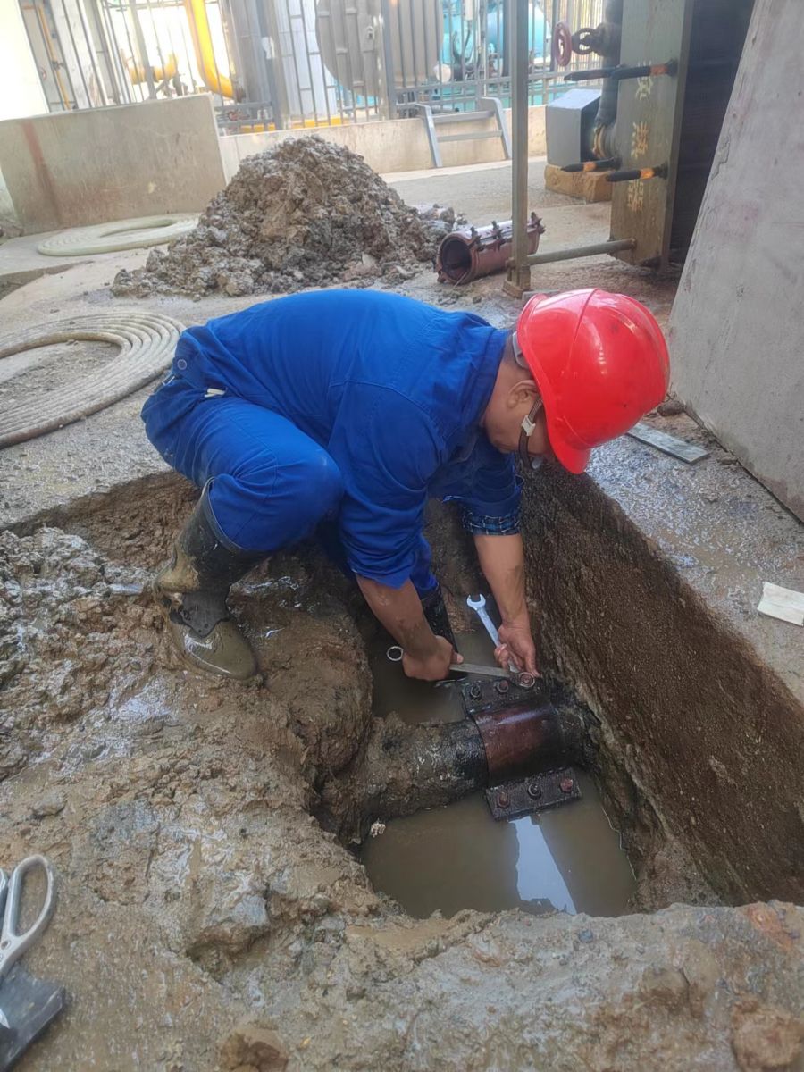 11月8日下午14:00,氯氢工区班长王雄飚在巡检时发现泡罩塔处有水从地下不停溢出,立即向当班调度和车间人员汇报,大家来到现场后,经检查确认为自来水管穿孔所致,为了不影响生产,必需尽快修复。