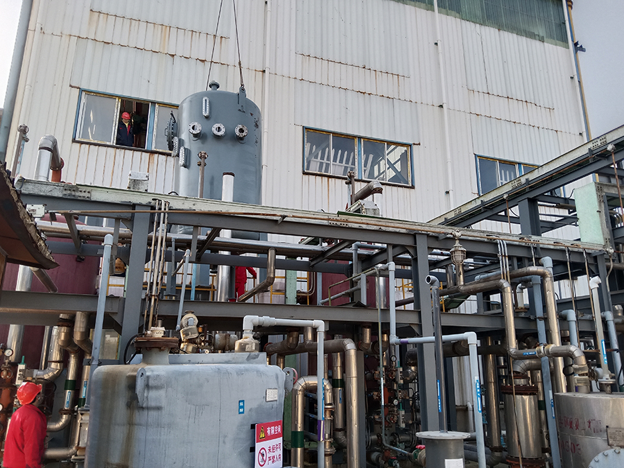 此次更换吊装空间小、管线复杂、精准度要求高,经过大家的共同努力和精心操作,在一天半时间内圆满完成了鳌合树脂塔更换任务。